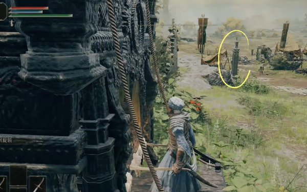 1、传送到“宁姆格福”区域的“关卡前方”赐福点,“关卡前废墟”就在右下方不远处。