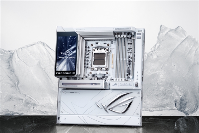ROG CROSSHAIR X870E GLACIAL亮点:磁吸式全白装甲;24(110A)+2(110A)+2供电模组;7个M.2接口;双万兆有线网口;5 英寸全彩 LCD 显示屏;ROG磁吸式内存风扇;显卡易拆开关。售价:10499元 | 开售日期:1月29日 22:00。