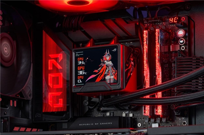 其采用RO姬次元美学设计风格,整体外观简洁统一,并随产品附赠RO姬主题小公仔、战术耳机配件以及定制铭板,方便用户进行整体风格搭配。冷头部分配备3.5英寸高清LCD屏幕,可实时显示硬件状态、时间信息,并支持自定义图片或视频内容,为主机日常使用增加了可视化与可玩性。