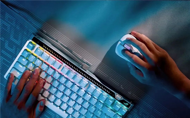 产品形态上,ROG 魔导士 Ace 75 HE 采用紧凑型 75% 配列,在为鼠标预留更多操作空间的同时,保留了完整的 F 键区、功能键区与方向键区,兼顾便携性与实用性。外观设计上,机身顶部贯通式灯饰板不仅支持 Aura Sync 神光同步,还可与键盘自带的RT调节滚轮联动,直观呈现RT灵敏度设置状态。双色注塑PBT键帽和按键独立背光设计,兼顾了优秀触感、耐用性和美观度,开启Aura Sync神光同步,打造专属氛围就在此刻。