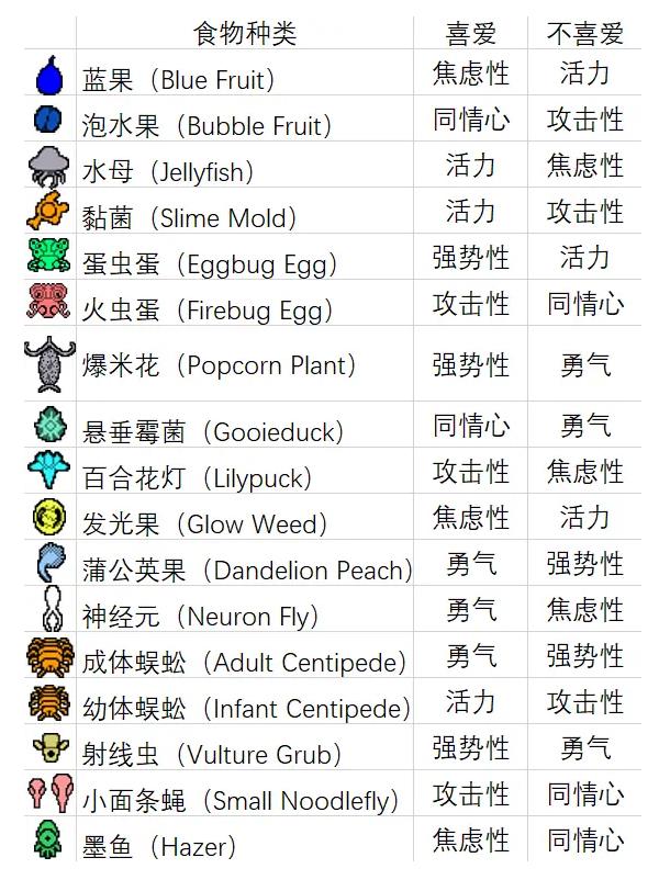 猫崽的食物偏好受性格因子影响,具体影响如下表所示: