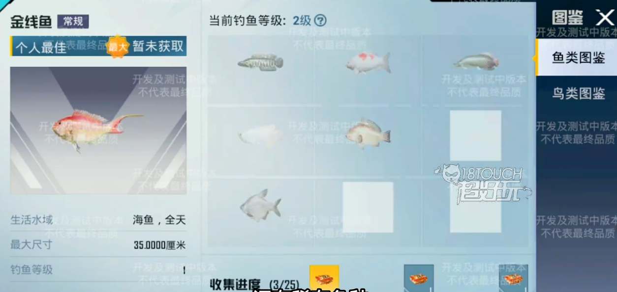 2、收集鱼类图鉴达到一定进度可以获取奖励,最多收集25种鱼类可以领取所有收集奖励。