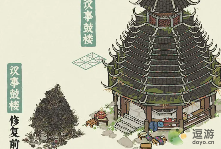 5、注意:议事鼓楼需要摆放出来才可以修复