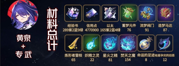 四、黄泉+光锥材料总计