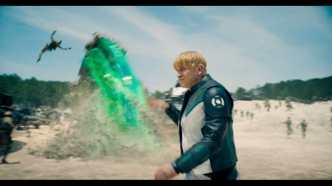 预告片出现了Nathan Fillion扮演的Guy Gardner(绿灯侠),一挥手轻松击败敌人,Isabela Merced扮演的鹰女以及María Gabriela de Faría饰演的工程师(The Engineer)。