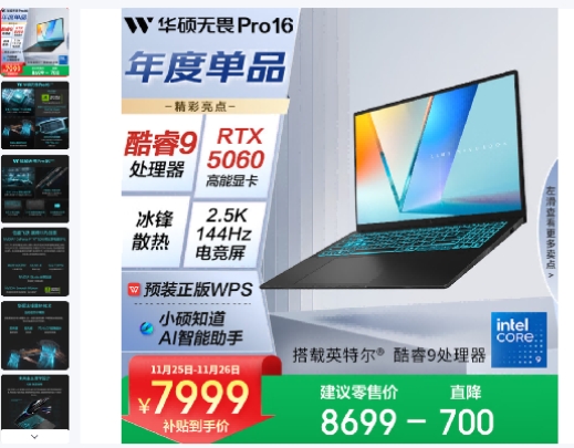 岁末正是装备焕新好时机,在今年众多AI PC新品中,华硕无畏Pro16 2025凭借硬核性能、高效AI与卓越视野,备受追求极致性能的专业创作者、热爱游戏娱乐的玩家、注重便捷办公的商务人士青睐。它配备酷睿9标压处理器、RTX 5060显卡、2.5K 144Hz高刷全能好屏等配置,全面助力高效生产与流畅娱乐体验。
