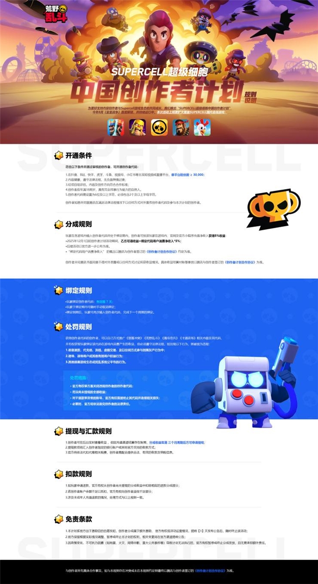 注册一个创作者代码,即可适用Supercell 全系列游戏;持续通过中国创作者计划,赋能创作者长线发展——Supercell 满怀信心,与广大创作者一起,谱写游戏内容生态的全新篇章。