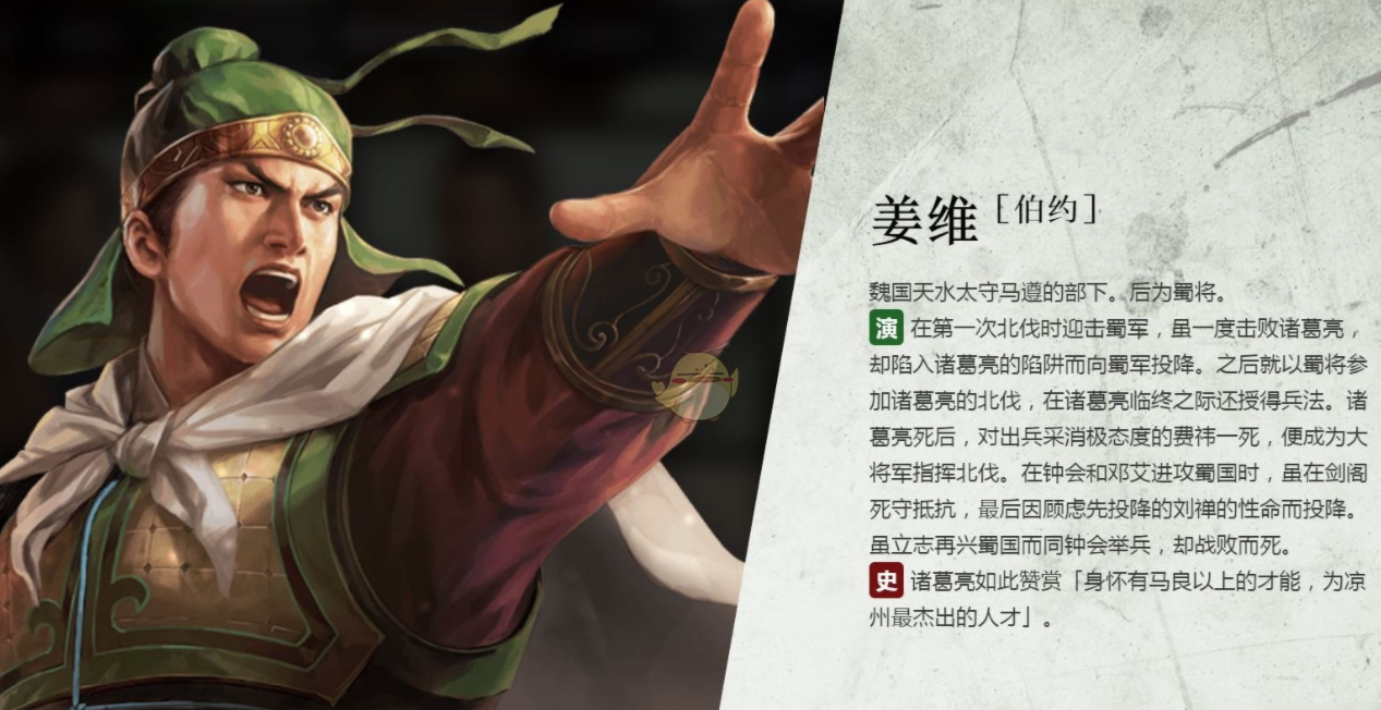 3、姜维战法测评:姜维能打能抗,拆技也很不错,可以考虑入手。如果有刘备的话可以玩玩看刘备+姜维的组合,相信能肉到让对手都觉得无语。
